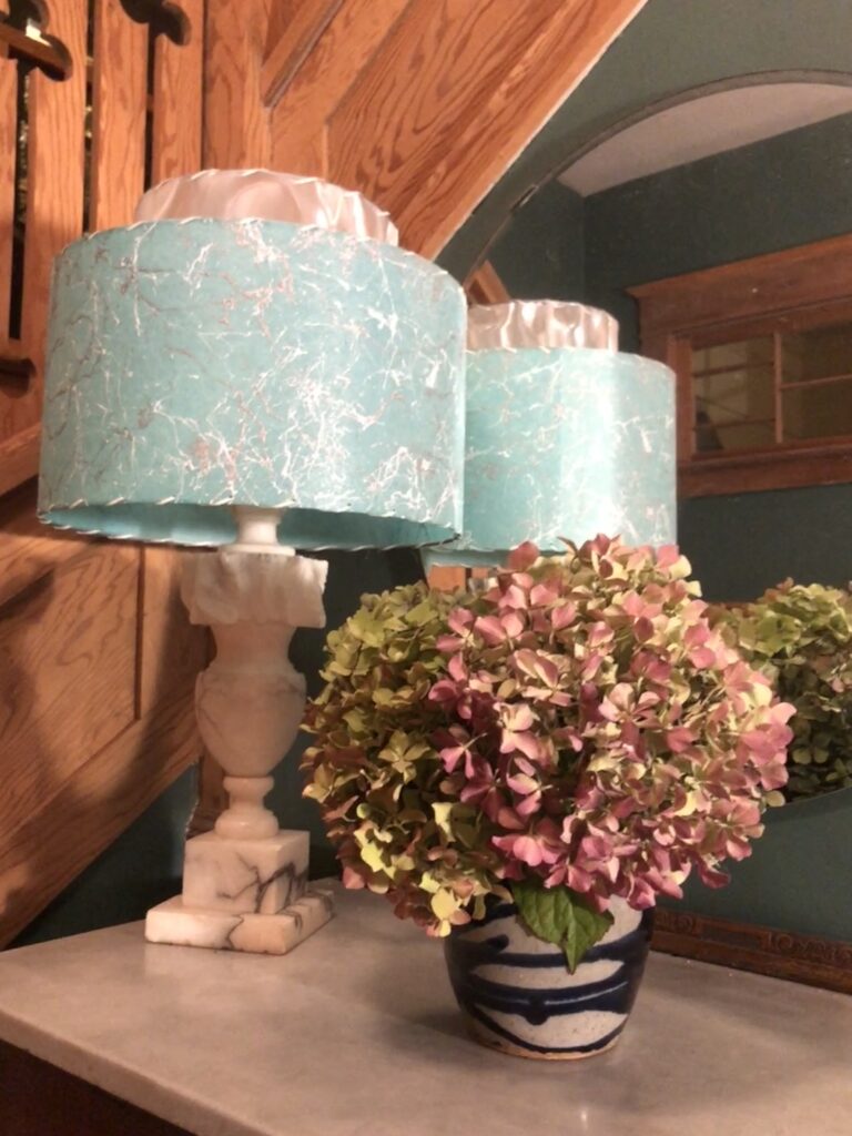 Forgot to write-- Those lamps in the picture with the hydrangeas are fascinating! Is that a mirror so it looks like a matched pair? I must have seen something similar at my grandparents', but not in pastels.