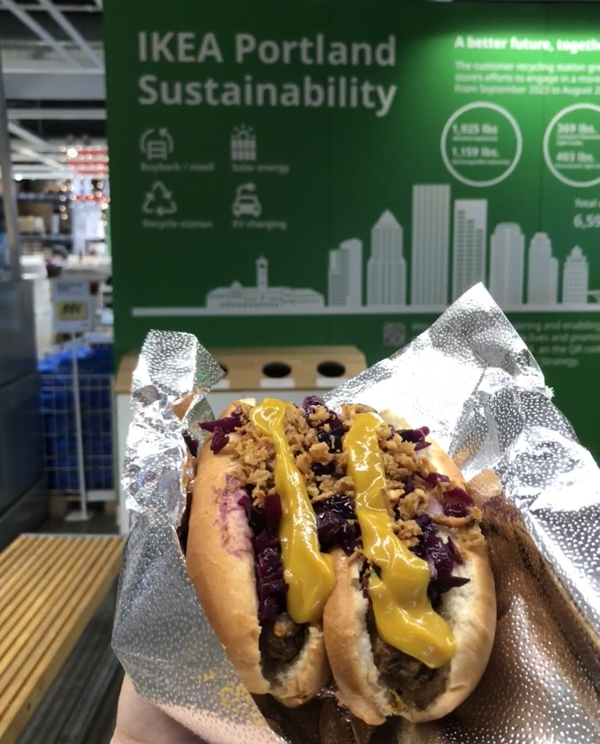 2. My friend and I drove to Ikea to work on blog issues and enjoyed their free coffee, as well as a baggie of Dollar Tree ginger snaps from home. We splurged on a pair of their veggie dogs, which have risen in price from $1.15 to $1.40 apiece! The horrors!