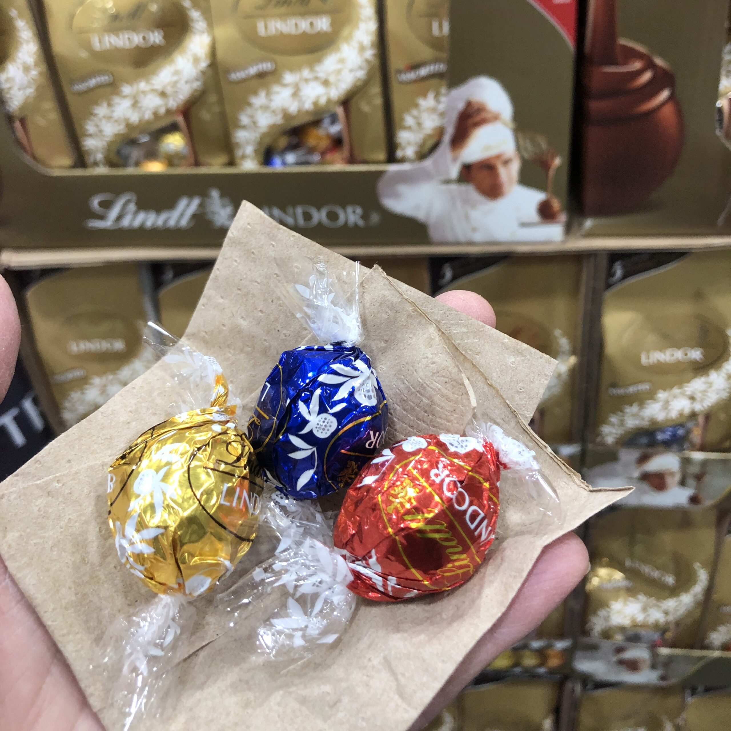 The samples were sampling and I accepted ham, chicken sausage, chips with guacamole, a tiny wiener wrap, cheese, broccoli, waffle, pretzel chips and yes -- chocolate.