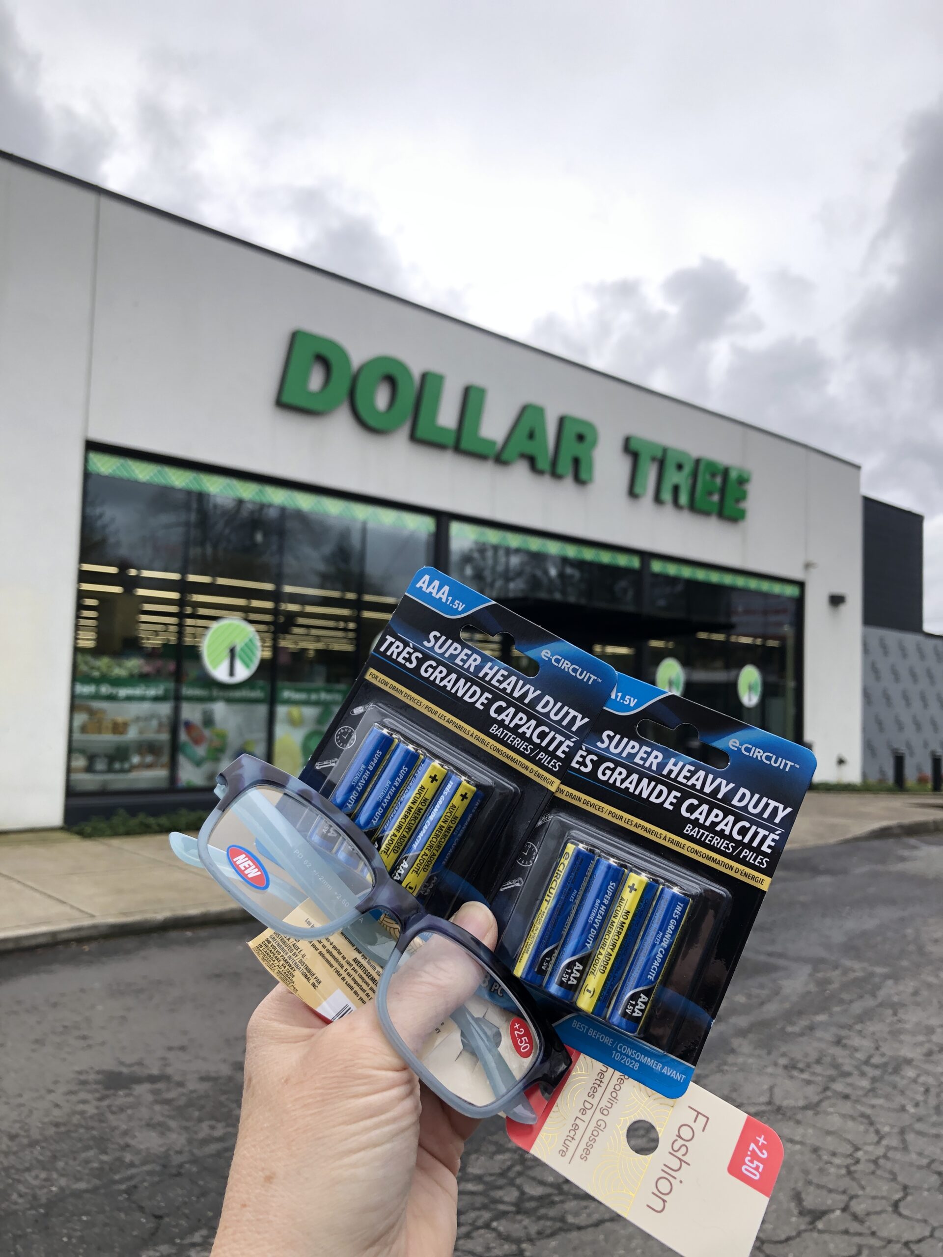 1. I stopped by Dollar Tree for AAA batteries, which I needed for my UV flashlight. Why? Because my grandkitty most likely peed on an upholstered ottoman and I need to engage in some further investigation. (Deep sigh . . . ) I went ahead and grabbed a pair of reading glasses as well since they had the style I like in the prescription I need.
