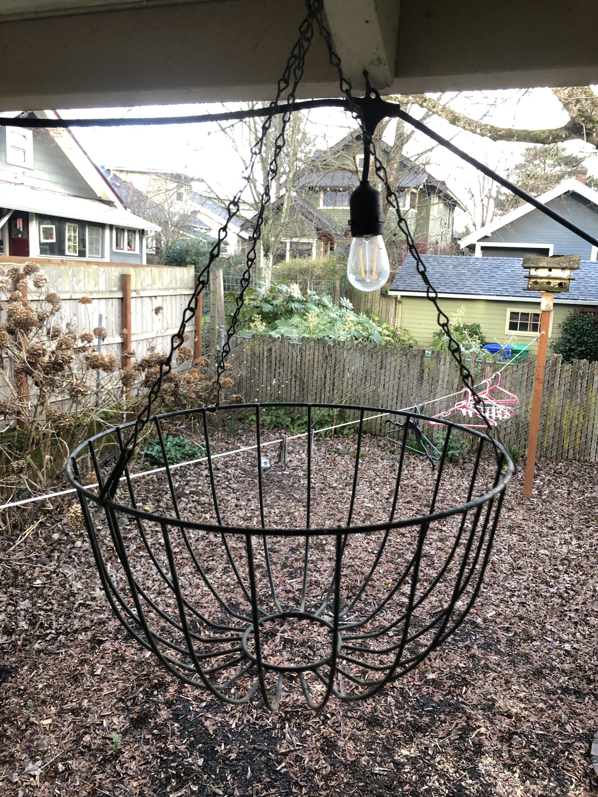 2. I have four hanging wire baskets in need of liners that I've ignored over the past couple of years. I'd kind of hoped to passively come across some free coconut coir, but that never materialized, so I did a web search for alternative ideas and learned that people sometimes line these with burlap or landscaping fabric.