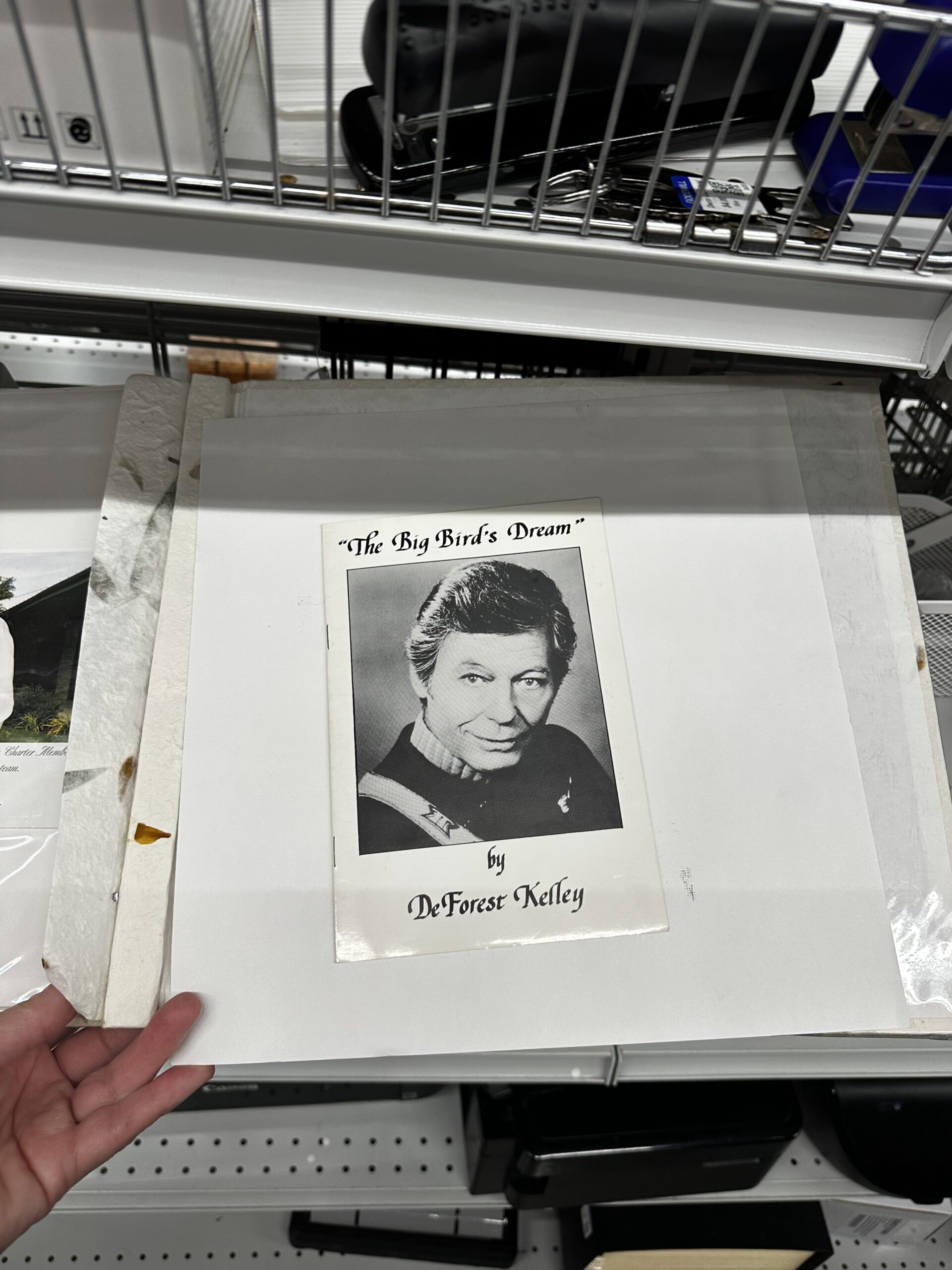 I spent $9.99 on a photo album that was filled with Star Trek mementos, including this poem booklet from DeForest Kelley, aka "Doctor McCoy" from the original Star Trek series. It's definitely worth more than ten dollars, although I can't find an unsigned one. The signed ones seem to sell for around $175, so I'll probably price this one at $75.