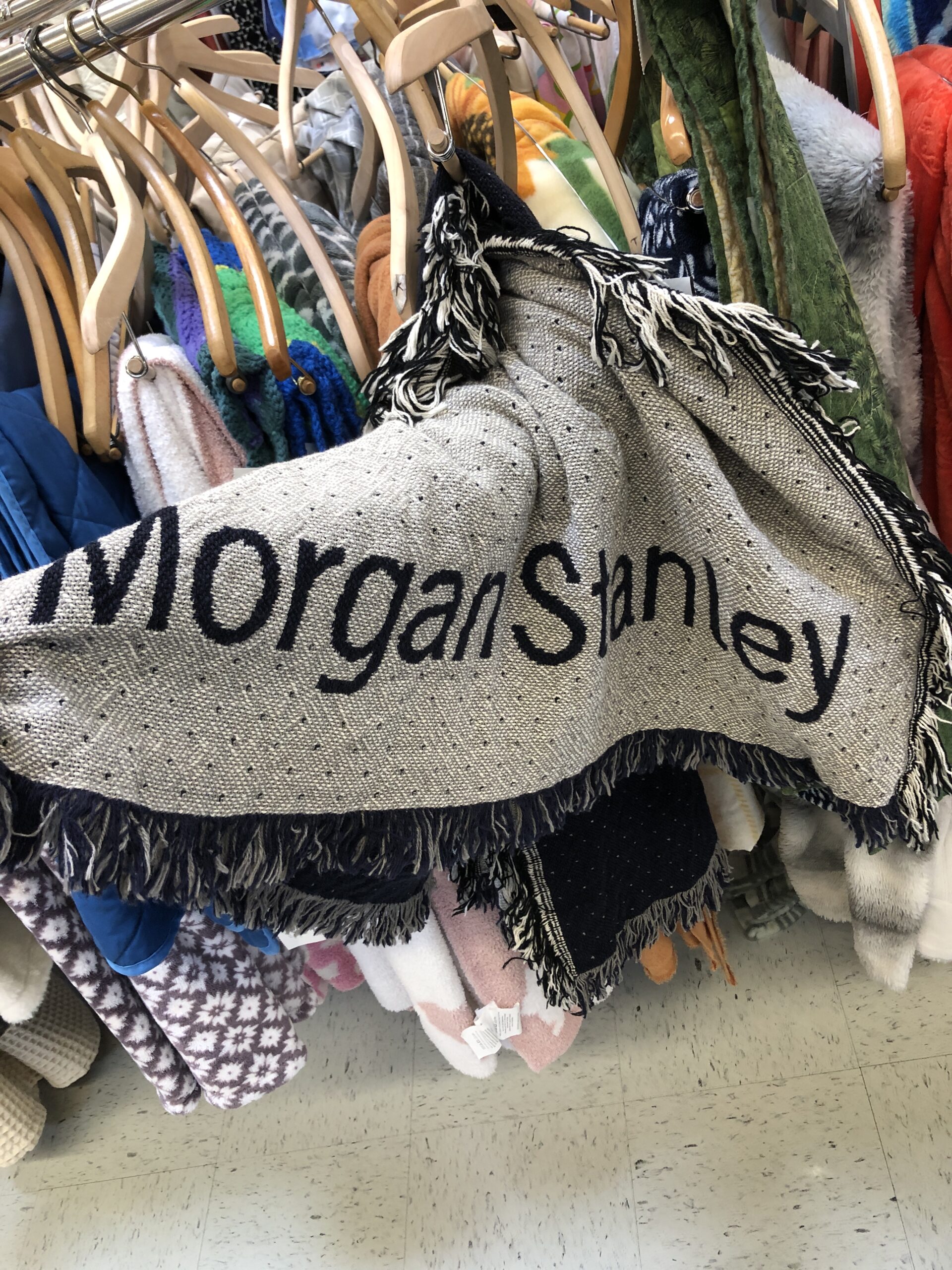 4. I thrifted an high quality Morgan Stanley woven throw blanket that I wasn't able to find anywhere on the world wide web. (This was the same day I got the H. Moser & CIE sweaters.) This is a sign that it's rare, so I threw it up on eBay for $300. Will it sell for that much? I have absolutely no idea, but it's worth a try. eBay is like a reverse auction, where you start the bidding at a high price and then let people offer less. The market then decides the appropriate price.