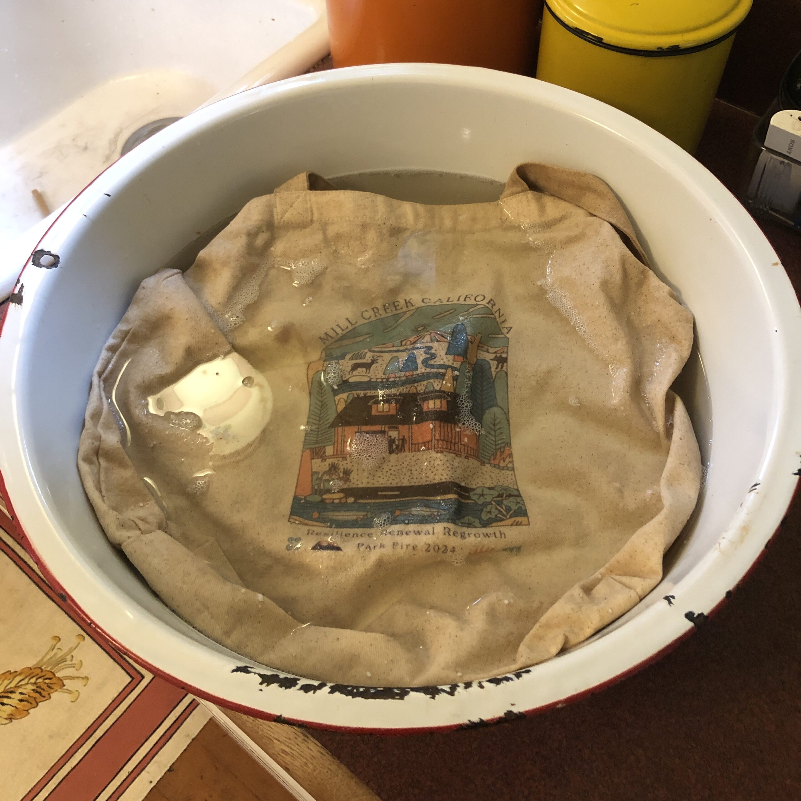 - The store also had a "FREE" box, which included this high quality canvas tote bag, which obviously followed me home. It was a wee bit grubby, so it's currently luxuriating in a soapy spa treatment. The sturdy handles are nice and long, which make them the ideal length to hang over the shoulder. Even though this is objectively the best handle length, it seems to be in the minority. Make it make sense!