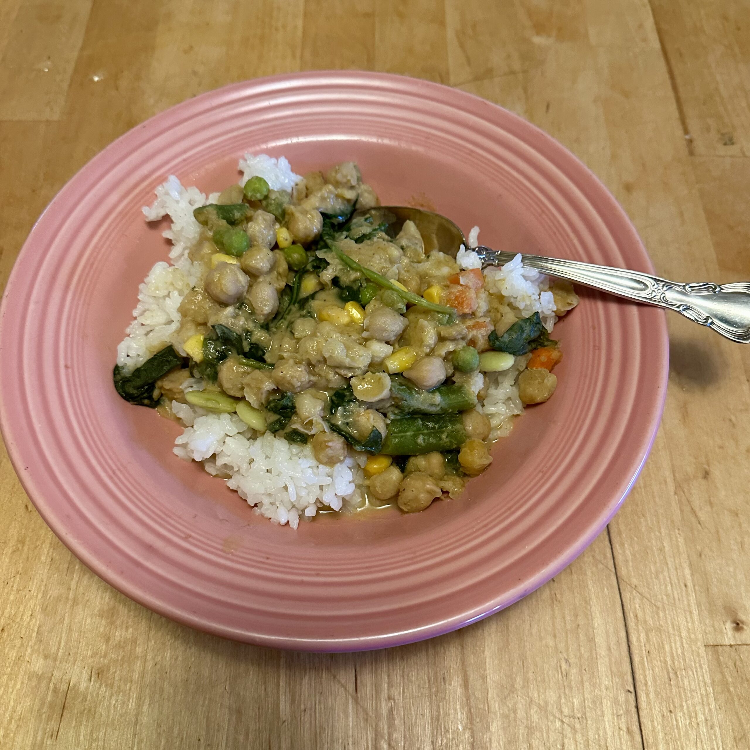 3) I took a container of home cooked garbanzo beans and added yellow curry paste, chicken broth, coconut milk and assorted veggies to make a yuuge pot of food to be served over rice. The garbanzo beans beans were at risk of being shoved to the back of the fridge, so I'm calling this a win.