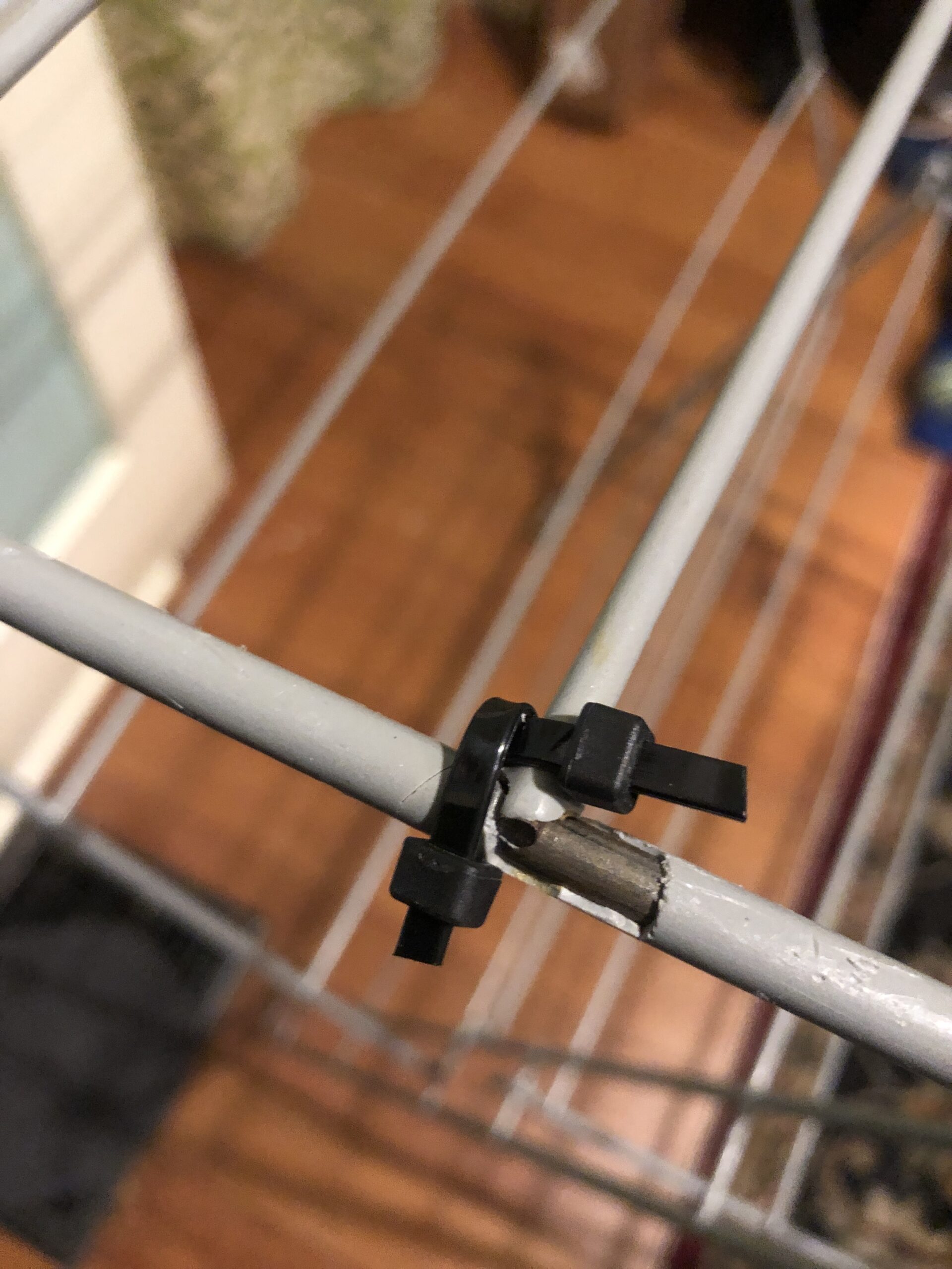 - I repaired my indoor clothes rack with a pair of lil' zip-ties that I already owned.