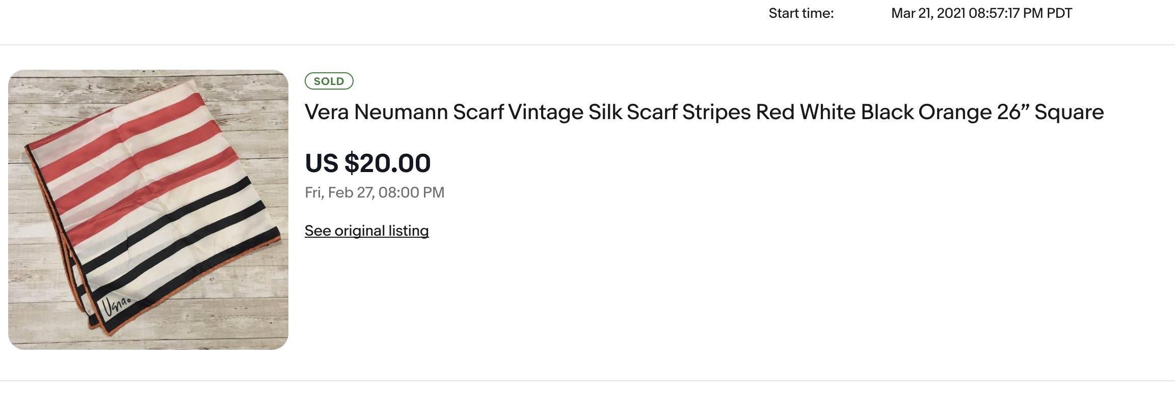 1. I sold a $20 silk scarf that I listed on eBay back in March of 2021! Yes, you read that right, it took five years to sell! I want you to remember this for next time you're tempted give me credit for being "good at selling on eBay."