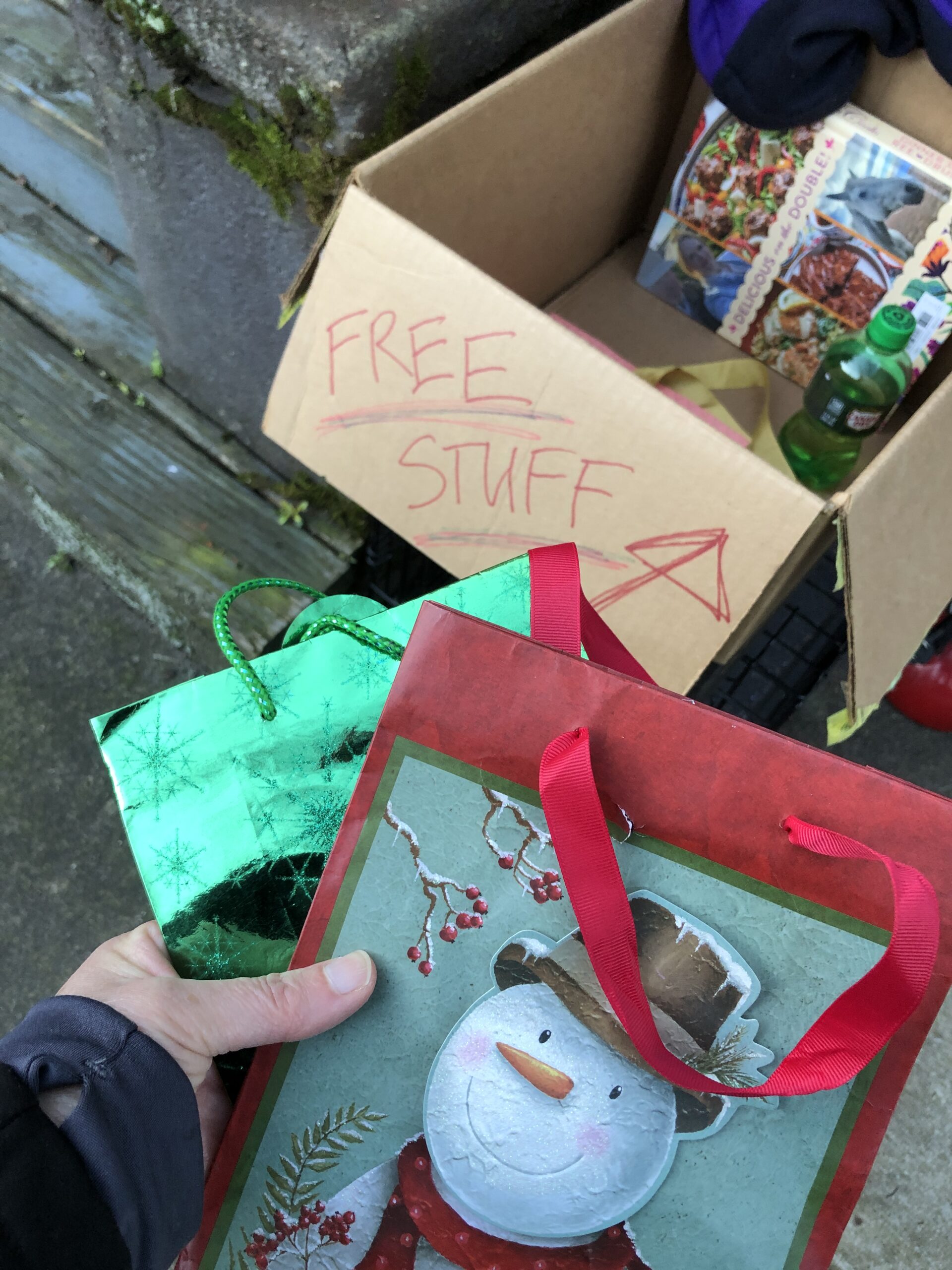 Two gift bags. Perhaps not the most exciting free score, but I didn't have enough gift bags this past Christmas season. Now I'm a teensy bit more prepared for Xmas 2026, without having spent a dime.