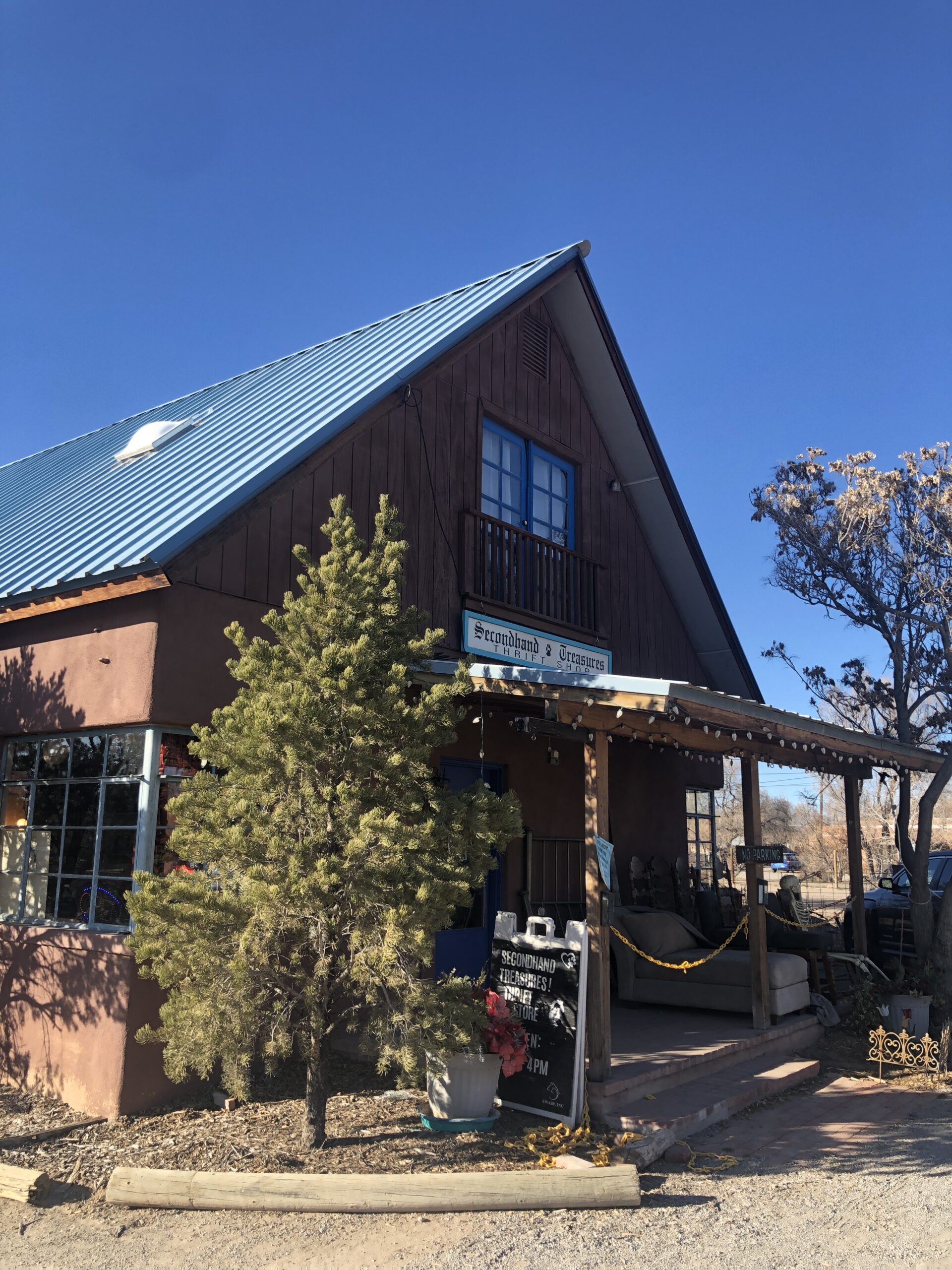 A few corrections are in order. Corrales is not a "town". It's a Village of just a very few thousand people. More animals than people. "Corrales" is Spanish for corrals or pens or enclosures. The Village has hundreds of horses, llamas, donkeys, cows, goats, and the occasional water buffalo. You must have missed the signs saying "Drive slow, see our Village. Drive fast, see our Judge." Don't drive 18 mph in the 15 mph zones. And there are no "chain stores" or "chain restaurants" (unless you're referring to the (very) occasional gas station. There are only two (2) of those. Secondhand Treasures is one of dozens of locally owner galleries, stores, restaurants, bistros and bars. The Village Mercantile is not a chain store. It's not even a people store. It's a livestock and animal feed and supply store. The San Isidro Church was erected in 1868 and is listed on the National Register of Historic Places. The Village lies along the Rio Grande and has wonderful walking and hiking trails. Just watch out for the horse manure.