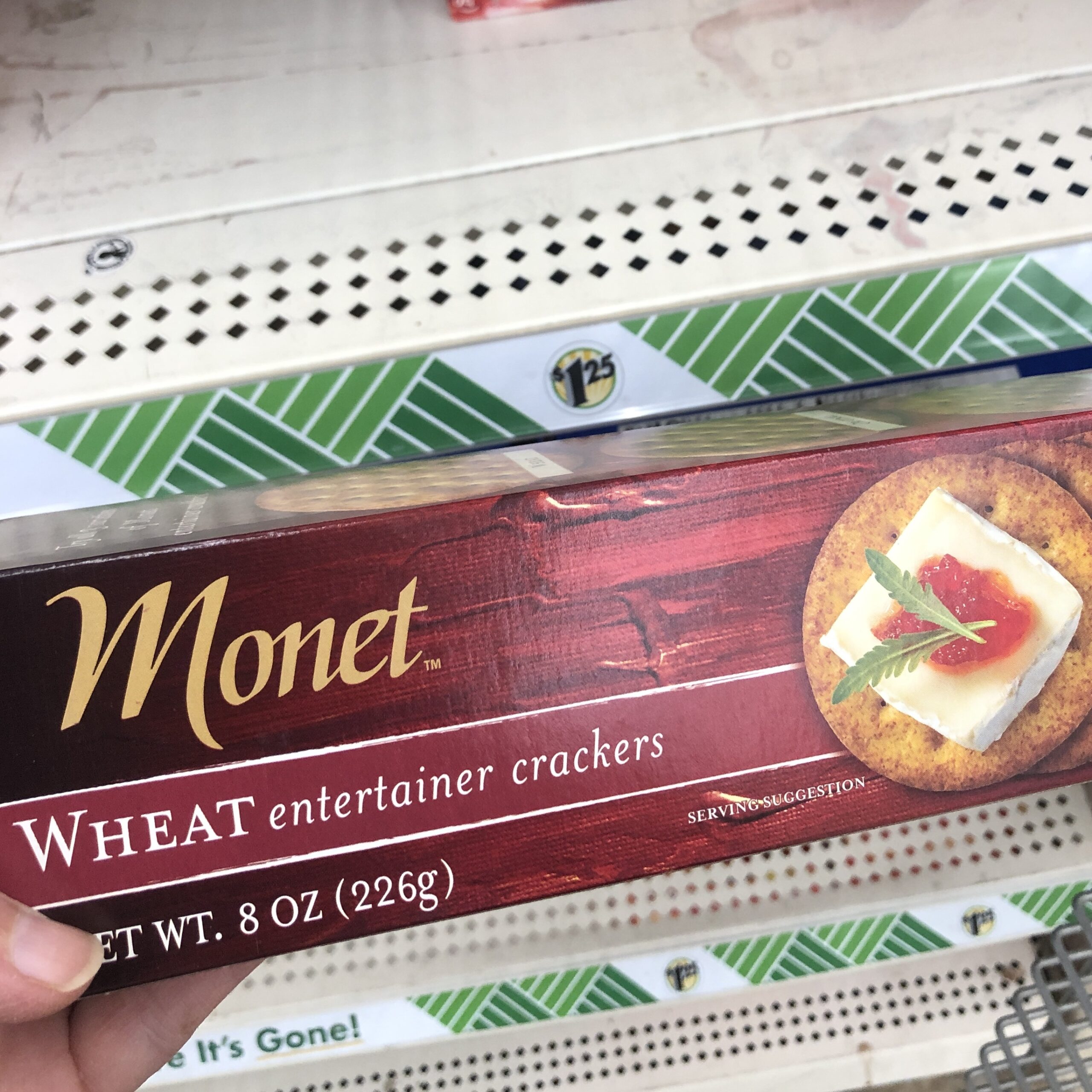 I'd normally buy their Monet brand "entertainer" crackers, but they seem to have switched to the creepily named "Global Brands" variety. My expectations are low, although I'm up for being wrong.