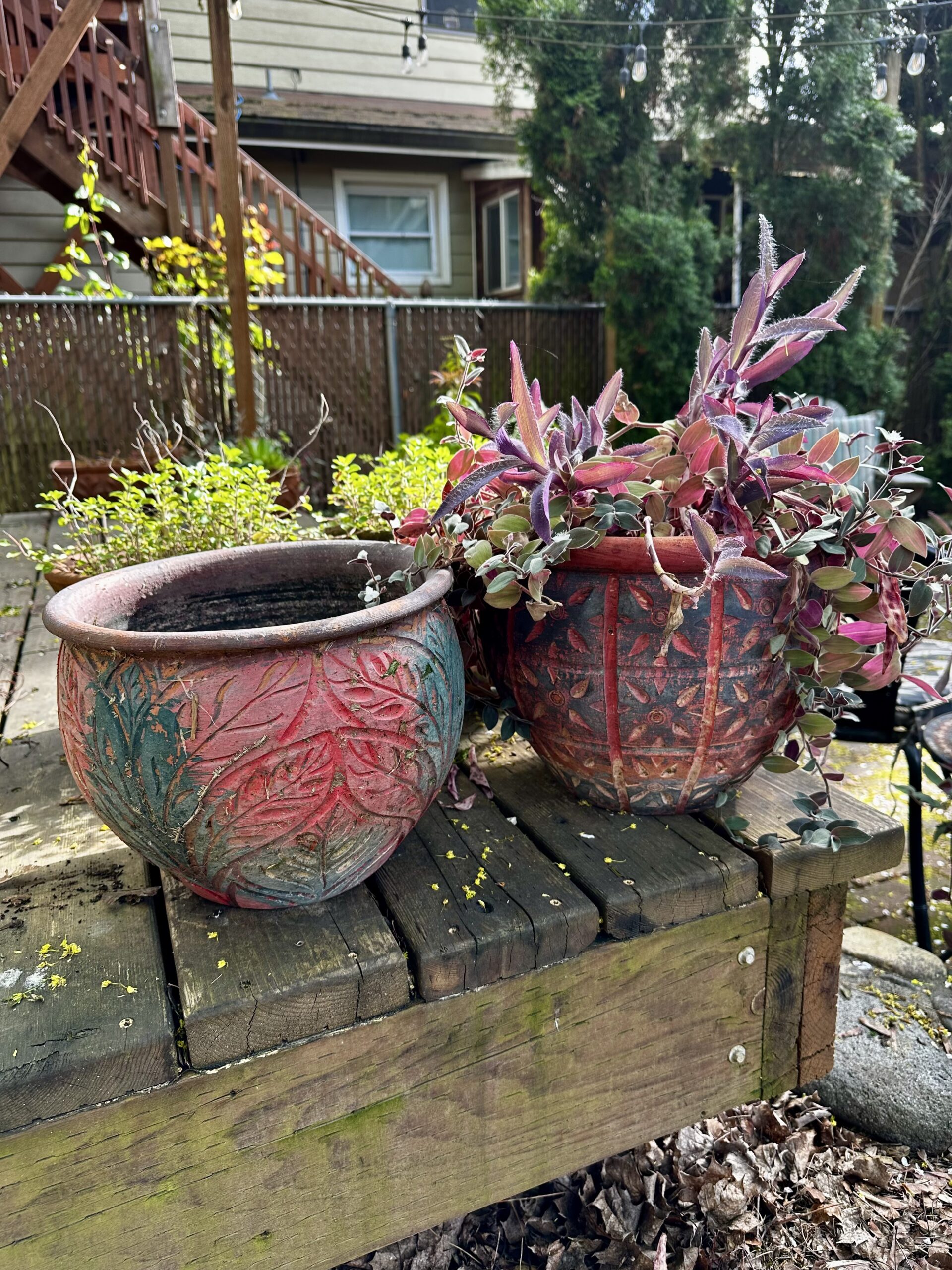 Here's the flowerpot, next to a similar one I garbage picked from this same street: