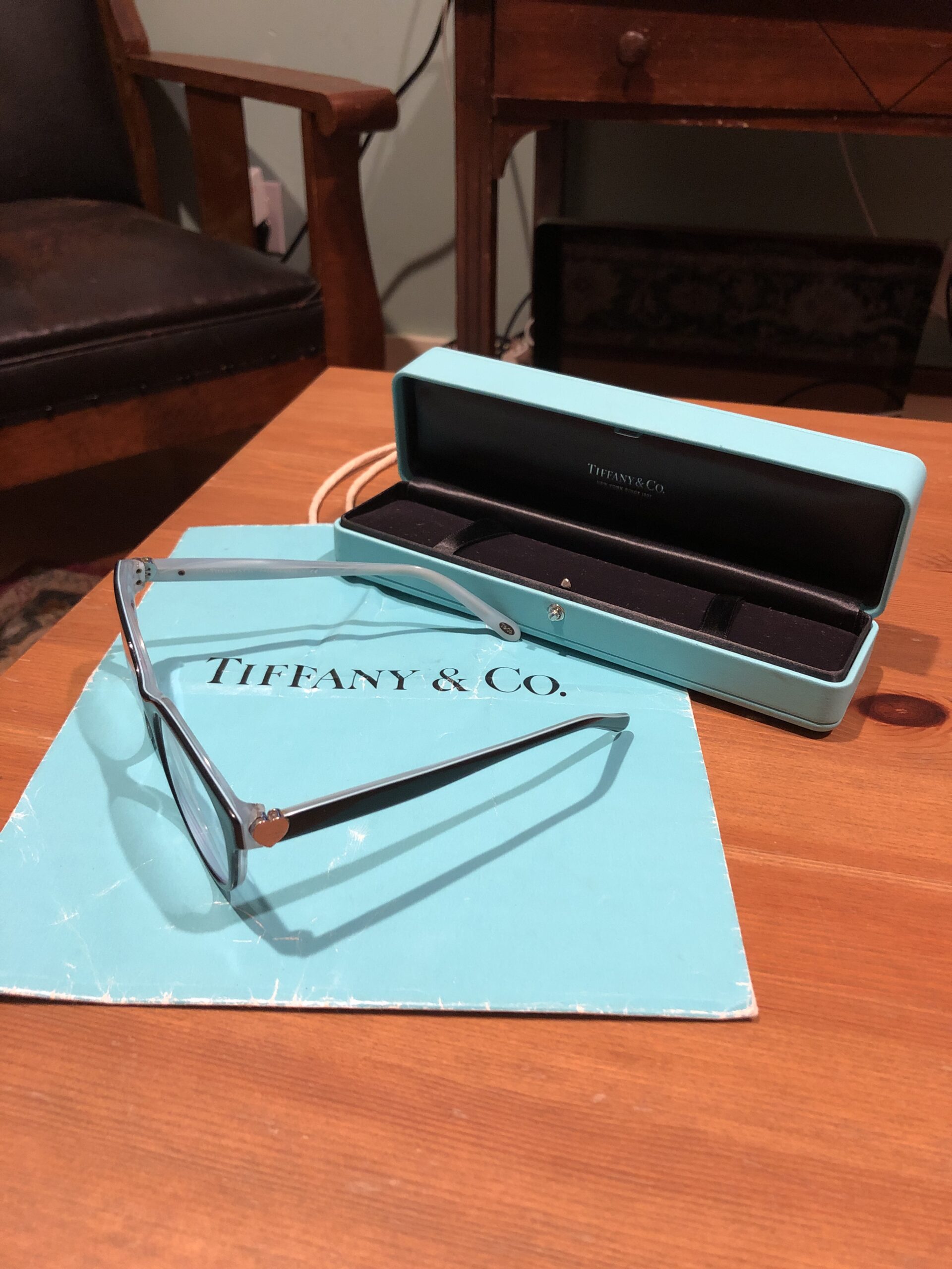 Apparently, yesterday was my day to find Tiffany & Co. items, as I also found this pair of prescription glasses. You might think that people don't buy other people's old glasses, but you would be wrong, as you can pay an optometrist to put your own prescription into secondhand frames.