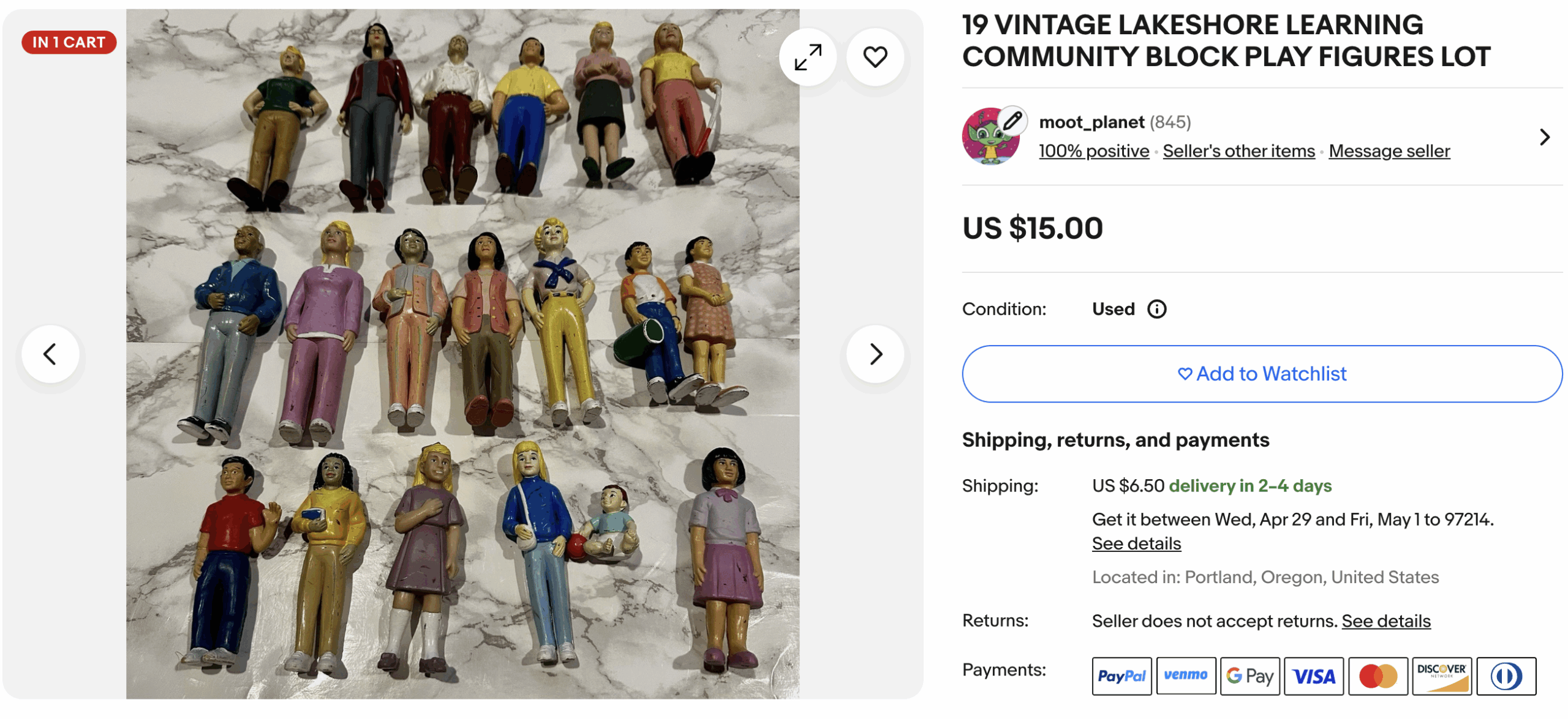 3) I listed the weird Lakeshore figure toys on eBay that I picked up at the Seattle Goodwill last month. I priced them low as they're actually pretty banged up. Not exactly a home run thrift store find, but I only paid $3.99 so not a terrible loss. They stood out as different from most mass produced toys and that always catches my eye. Unfortunately I was socializing with my friend and didn't take the time to look them up.