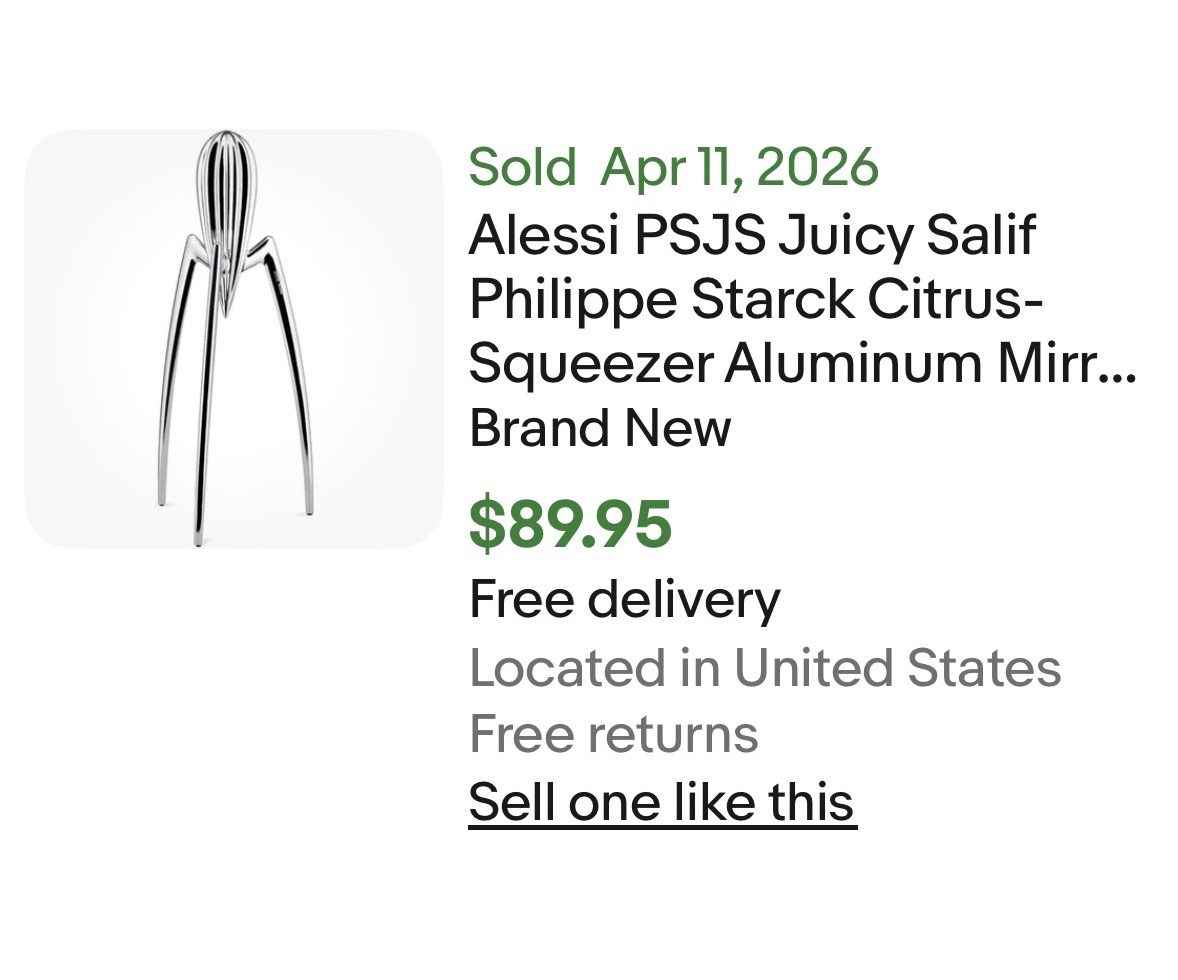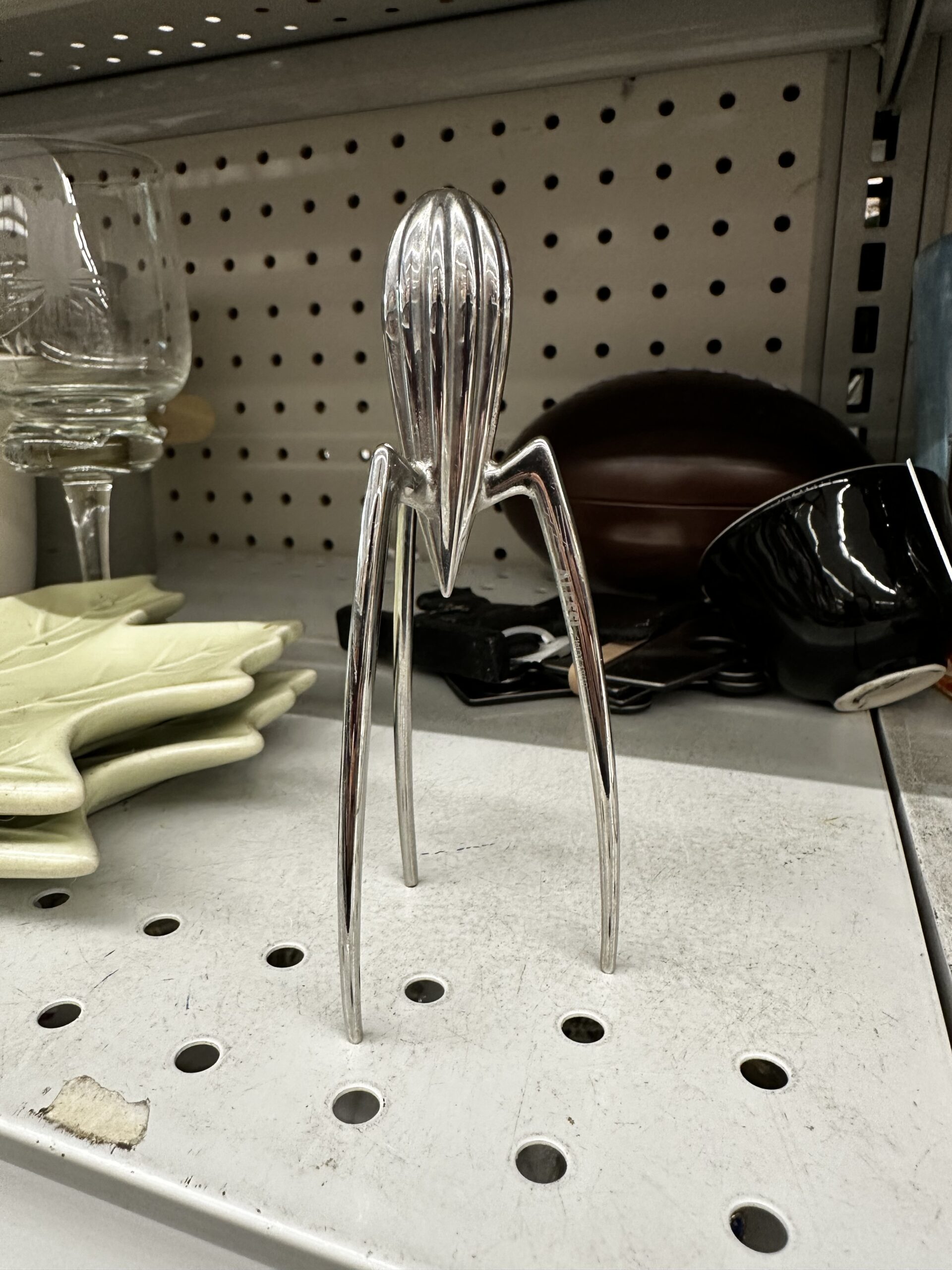 2) My Winco is just a few blocks away from a Goodwill, so I often pair the two outings. I scanned through all the non-clothing aisles, but brought home just one item. This $1.99 Philippe Starck "citrus squeezer." It stood out as decidedly different, so I ran through Google Lens to discover what it was.