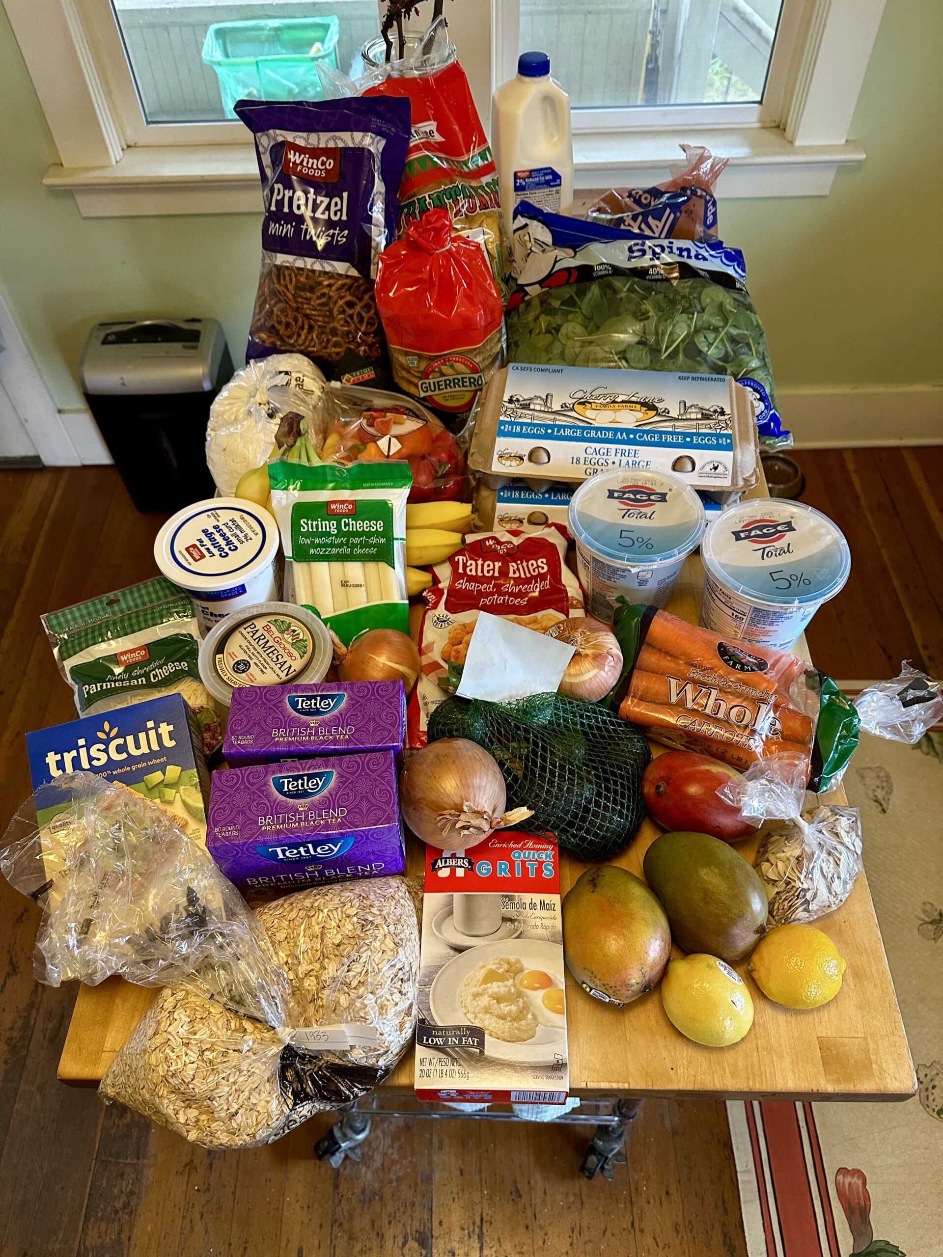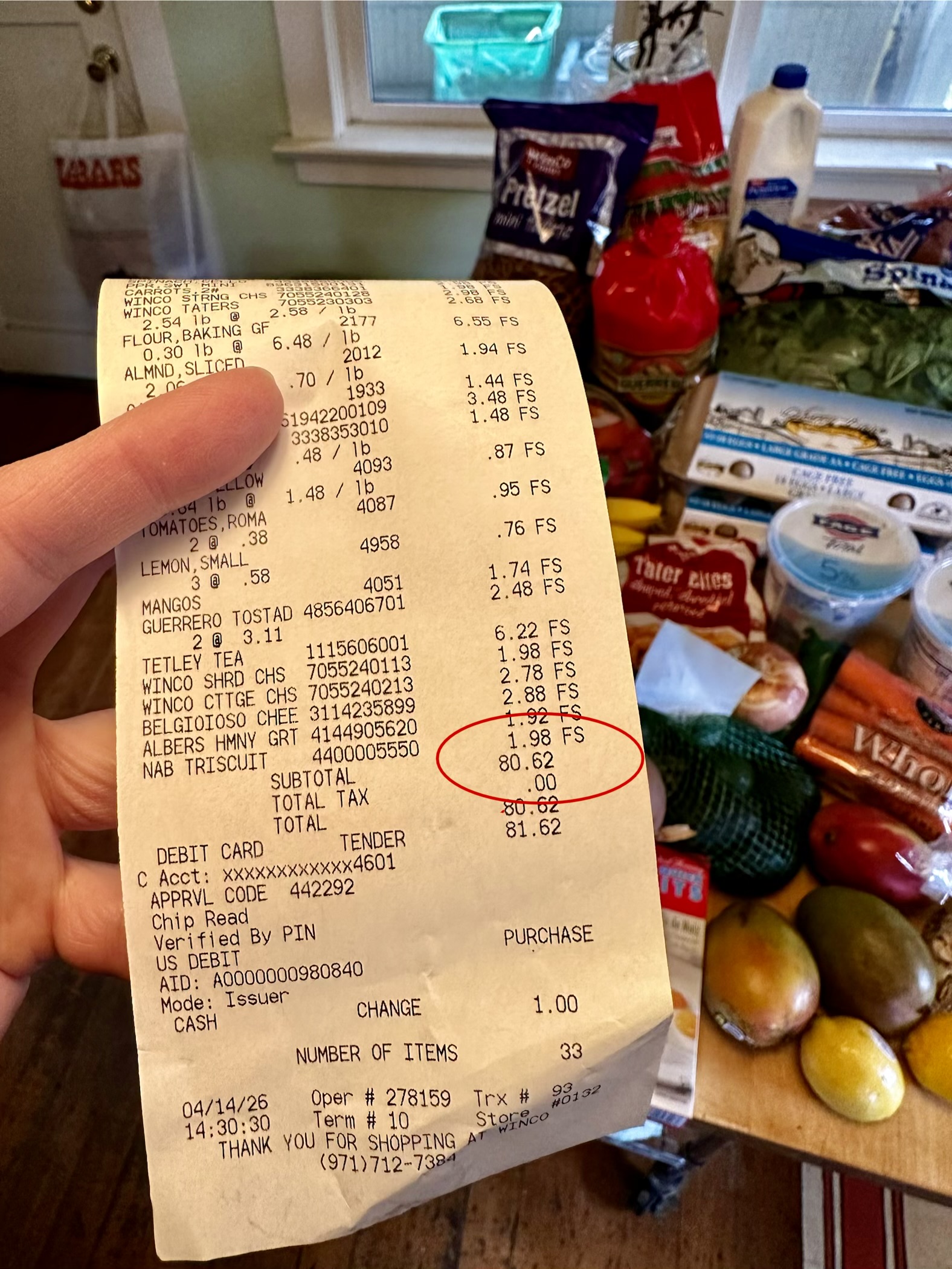 1) I did a big Winco grocery shop, which I do about every other week. Everything on my island here was $80.62, which isn't too bad. Especially since the $6.20 yogurts and $6.55 bulk gluten-free flour are on the higher end of things.