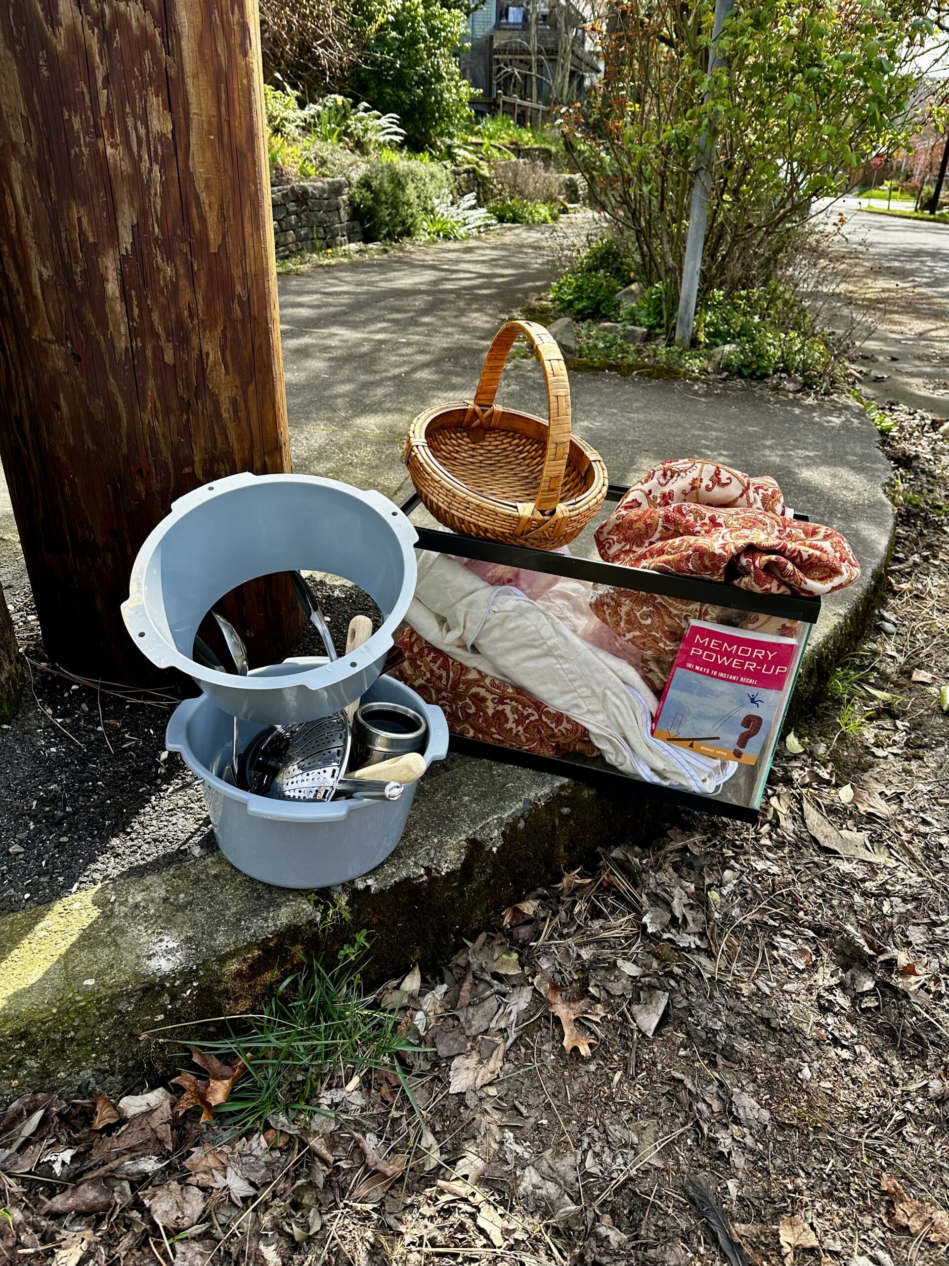 3. You know it's true spring season when "free piles" start popping up in the neighborhood. I pulled the car over to peruse this one, but didn't bring anything home. I was tempted by the OXO brand steaming basket, as my one is glitchy, but realized that mine still works and I didn't need anything here.