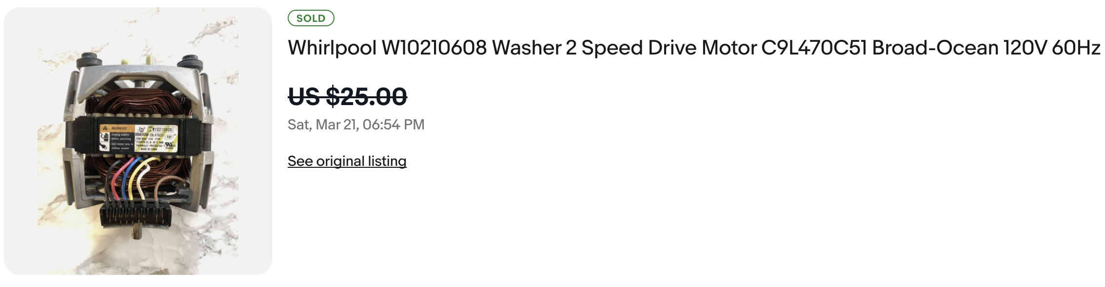 5. I sold a washing machine motor for $25 that didn't work with our model, and had sat on my eBay shelf since December. We paid $37.50 for it last year, so the loss wasn't too bad. The best part is that it's out of the house and will be put to use.