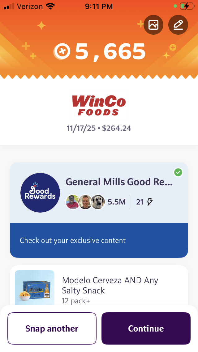 2. I picked up an abandoned Winco Foods receipt and scanned it into the Fetch app -- hello 5,665 points! For reference, my actual Winco receipt earned me a mere 25 points, as I didn't buy any corporate big name products. Thank you, random littering stranger!
