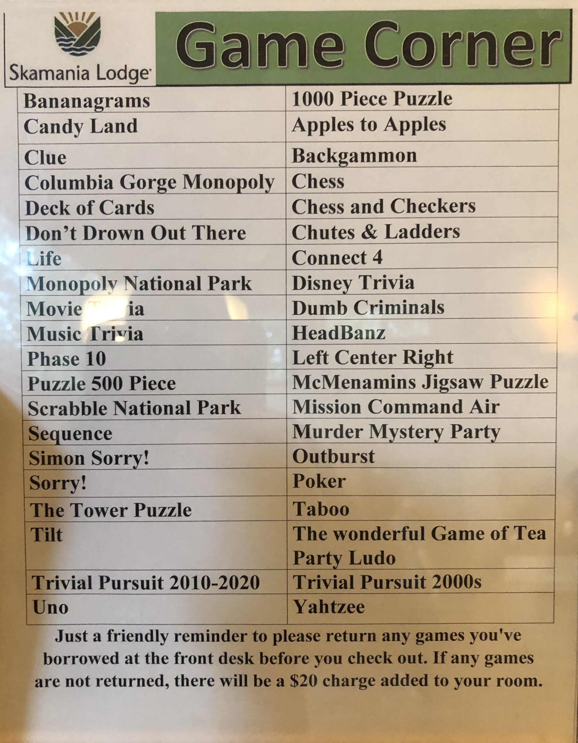 Belated Happy Birthday Katy! I'm glad you were able to get away in a nice but frugal way. I love that games are available to borrow at the lodge. Our library offers games that can be checked out.