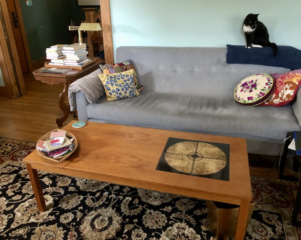 Someone left a cold seltzer can on my $25 thrifted coffee table, which left the above water mark. Luckily I noticed it the next morning and knew of a reversal method, which was mostly likely successful because the damage was fresh.