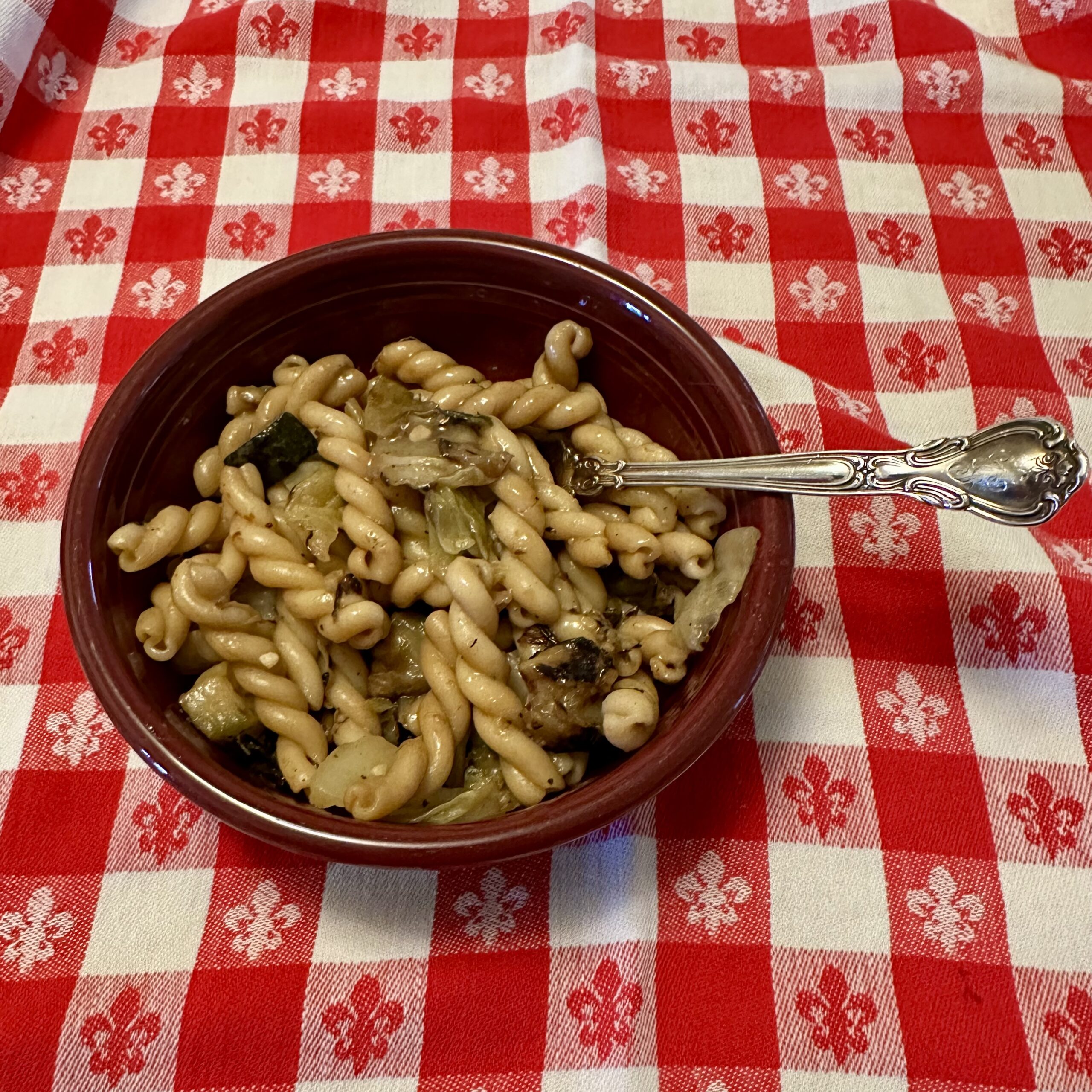 3) I made a Dirt and Buttons meal last night, utilizing a zucchini, chopped cabbage, a forgotten half bag of pasta and a scoop of chicken bouillon. It wasn't something I'd serve to my fanciest guests, but it did the trick of nourishing us and using up food that was at risk of going to waste.