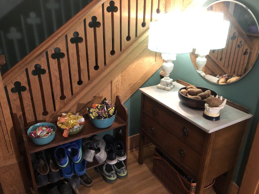 My house was a big hit on Halloween, as lucky trick-or-treaters got to choose between Hi-Chews, chocolate coins, Taki chips or . . . a potato! I probably gave away five pounds of potatoes, which was super fun as kids of all ages got a kick out of the absurdist humor. (Worry not, each potato kid got an additional handful of Hi-Chews!) There was a lot of "Mom, I got a potato!" that I could hear right through the walls of the house. Even kids who chose the standard candy looved the offer.