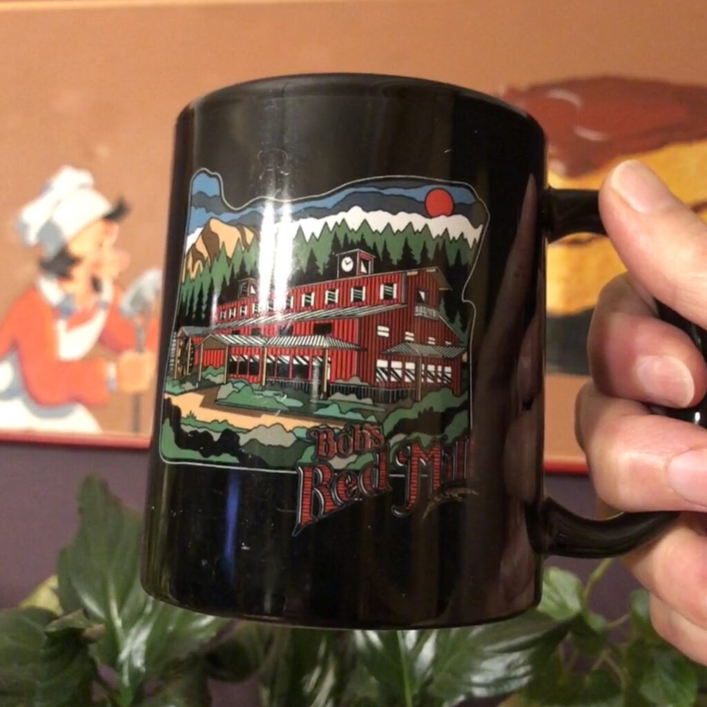 I pulled a Bob’s Red Mill mug from a free box. They recently closed their retail store, which is a huge bummer as it was always fun to shop from the bulk food section and then get lunch from their cafe. In the actual building that’s on all their packaging! Sigh . . . .