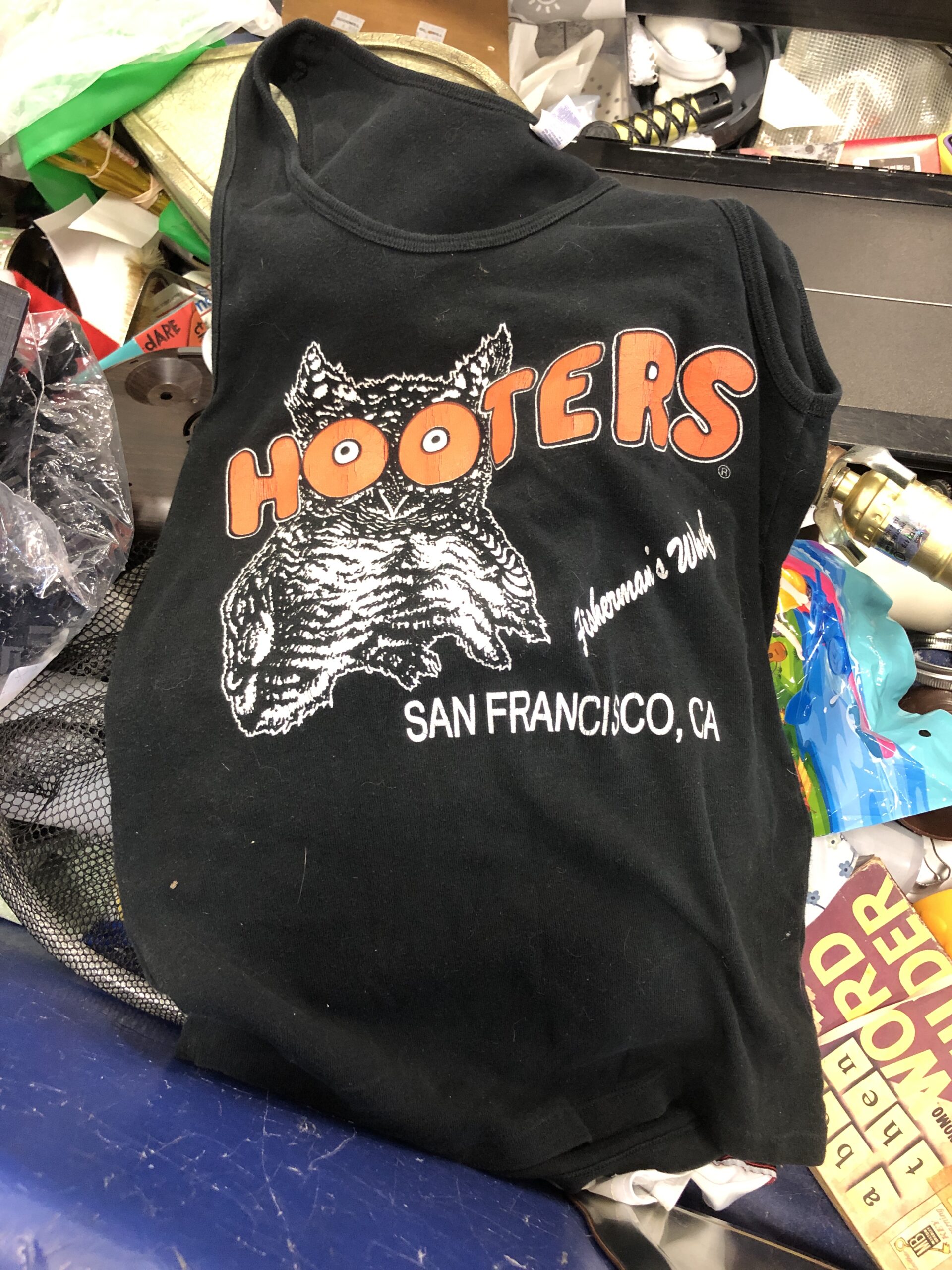 This rather small Hooters tank top, which hilariously is a "large!" I have it up on eBay for $30.
