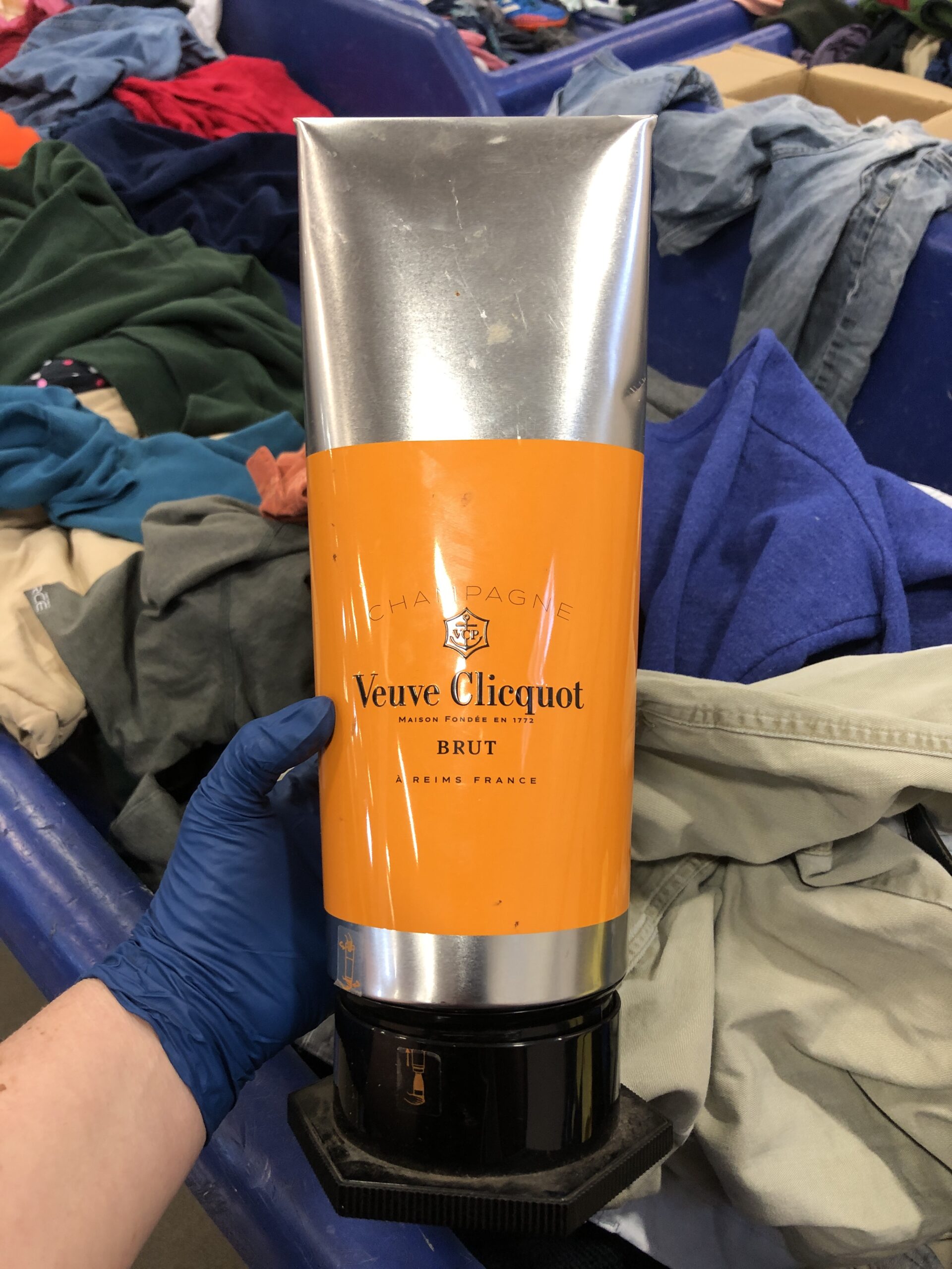 A Veuve Clicquot collectible champagne paint tube tin. I know to keep an eye out for this specific category, as I've once (twice?) resold their tins. I think I got $75 last time, but this one sells for less. It weighs very little, so it met my goal of "high value, low weight" items. I have it up on eBay for $42.